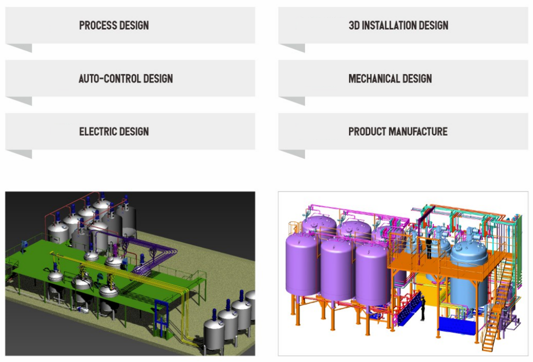 We are experienced in design of technology and equipment,with professional technical team composed of process design autocontrol design,electric design and 3D installation design.It according to GMP,ASME and other standards which will fulfill the needs of pharmaceutical and food industry.