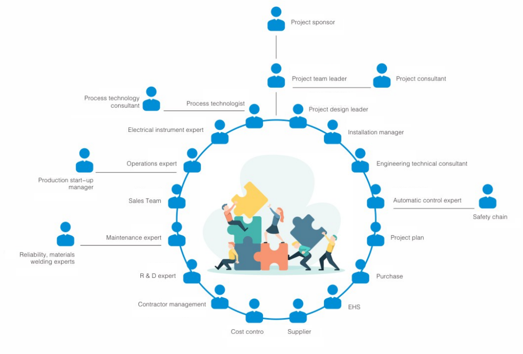 The company has domestic first-class engineering design experts,process control experts,equipment design experts, quality management and technical management experts,and equipment manufacturing technical and professional teams.According to the process characteristics and scale of the customer's project,we organize the company's resources to connect with the customer,form a professional project team, establish project goals and processes,formulate detailed project plans,communicate at regular meetings,and strictly control the key elements of the project.