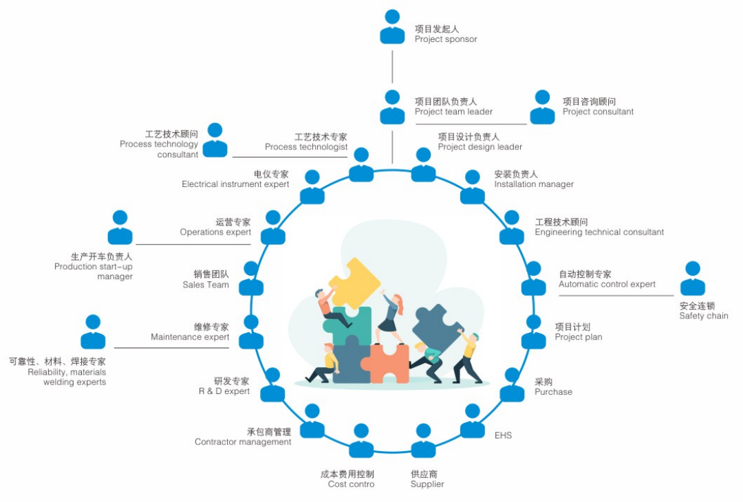 公司拥有国内一流的工程设计专家、工艺过程控制专家、设备设计专家、质量管理和技术管理专家、设备制造的技术专业队伍。根据客户项目工艺特点和规模大小,组织公司的资源与客户对接,组建专业的项目团队,建立项目目标和流程,制定详细项目计划,定期的会议沟通,严格控制项目的关键要素。